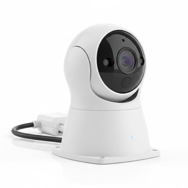 Câmera de segurança IP com conexão Wi-Fi, visão noturna e áudio bidirecional.